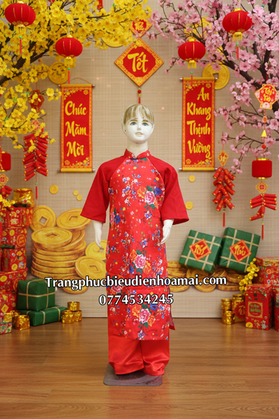 Cho thuê trang phục áo dài thiếu nhi đỏ tau nhung đẹp, chất lượng, giá tốt