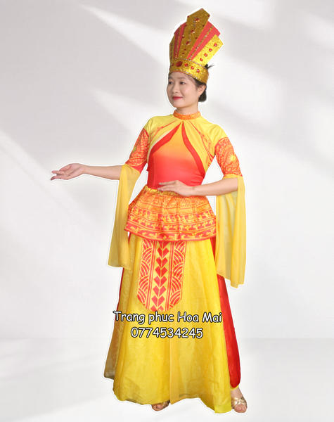 Cho thuê trang phục Múa âu lạc nữ - Đỏ vàng tay loe