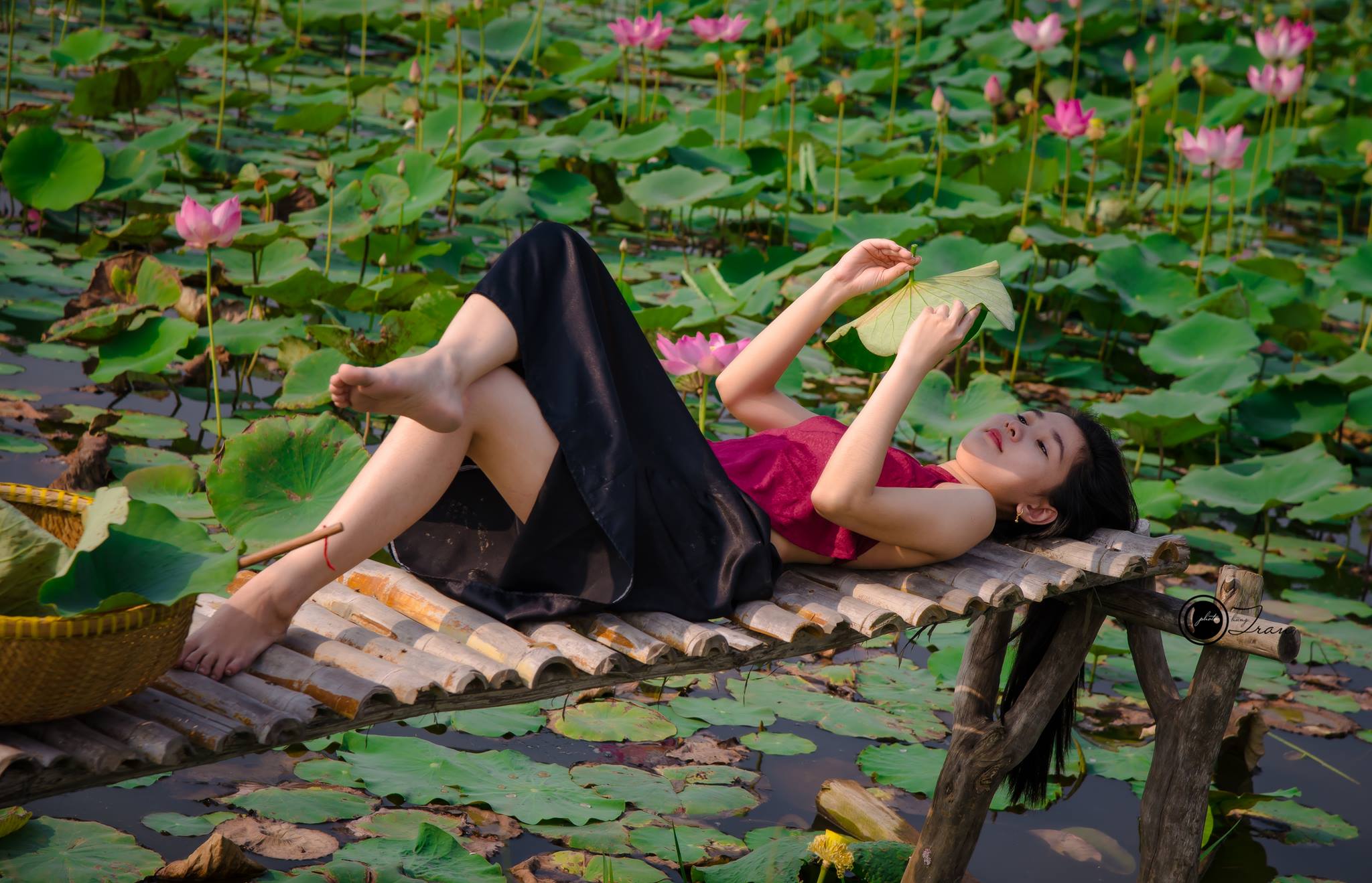Hoặc có khi để các bạn nữ lưu giữ tuổi thanh xuân nhan sắc mặn mà qua bộ ảnh chụp váy yếm tại hồ sen